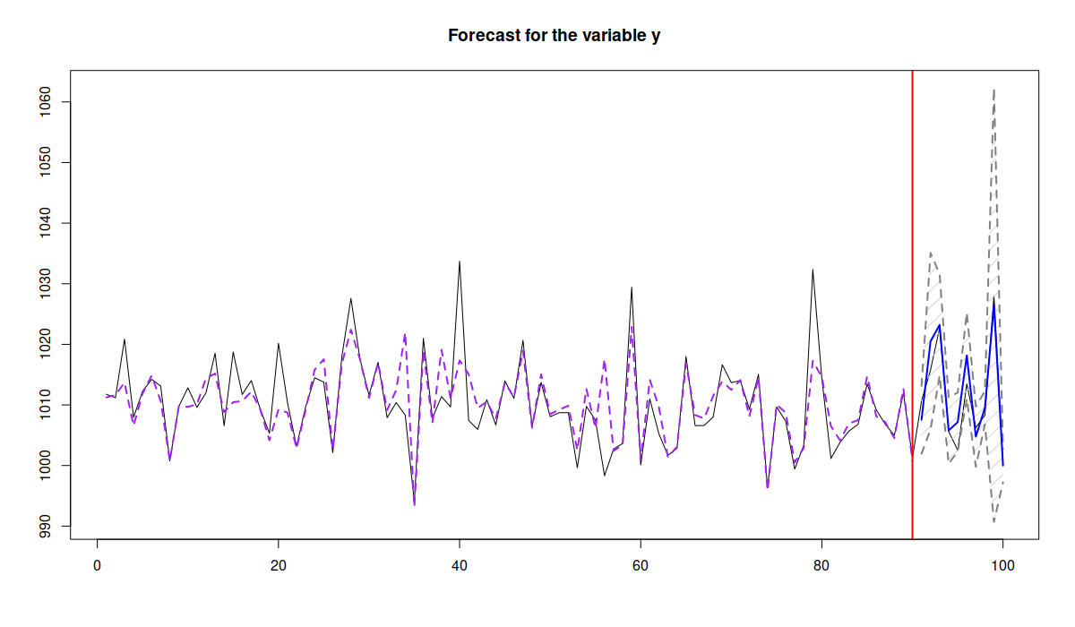 lmModel <- lm(y~x1+x2+x3, as.data.frame(xreg), subset=c(1:90)) smModel <- sm(lmModel, formula=~x2+x3, xreg)