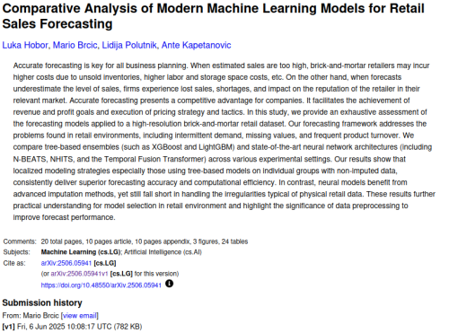 The authors apply several ML methods to retail data, compare their forecasting accuracy, and conclude that XGBoost and LightGBM outperform N-BEATS, NHITS, and Temporal Fusion Transformer. While the finding isn’t groundbreaking, additional evidence on a new dataset is always welcome.