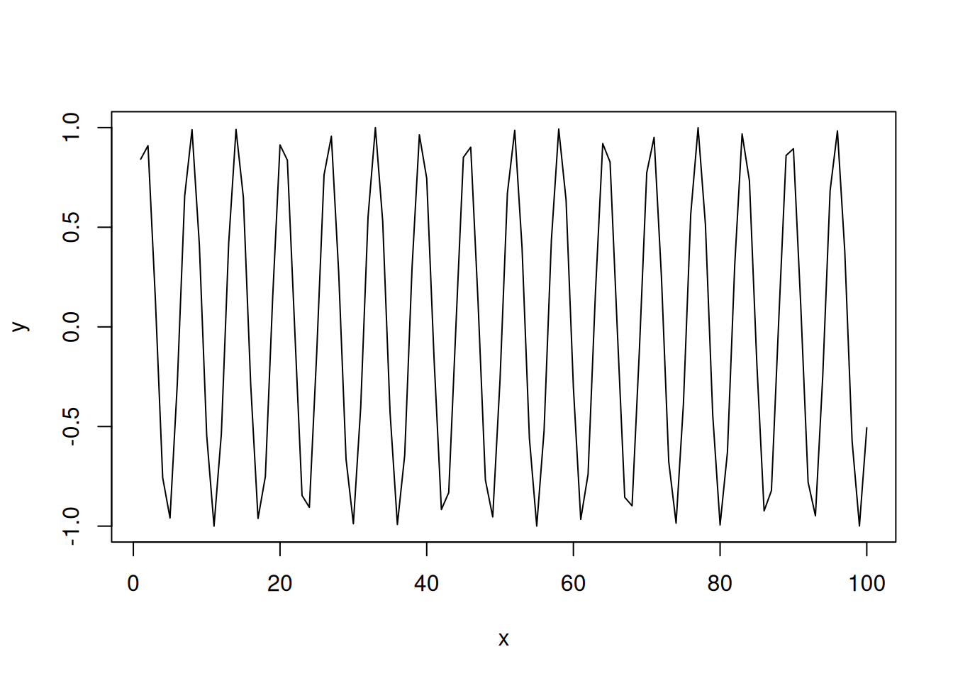 In order to correctly diagnose such non-linear relation, either one or both variables need to be transformed to linearise the relation. In our case this implies measuring the relation between \(y\) and \(\sin(x)\) instead of \(y\) and \(x\):