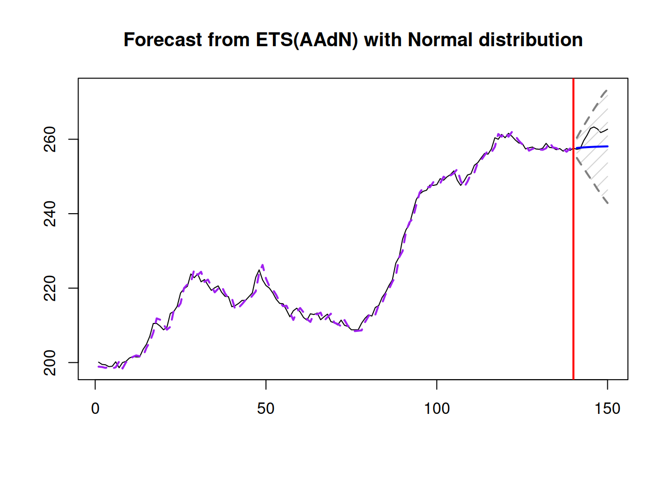 Finally, we come to the distributional assumptions of ADAM. As discussed earlier (for example, in Section 11.1), ADAM framework supports several distributions, and the specific parts of assumptions will change depending on the type of the error term in the model. Given that, it is relatively straightforward to see if the residuals of the model follow the assumed distribution or not. There exist several tools for that.